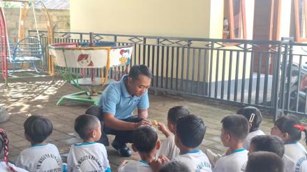 Perbekel Kayu Putih, Gede Gelgel Ariawan, menghadiri perayaan Hari Ulang Tahun (HUT) ke-10 TK Wiguna Kumara yang dilaksanakan di halaman bermain TK Wiguna Kumara, Desa Kayu Putih, Kecamatan Sukasada, Kabupaten Buleleng.