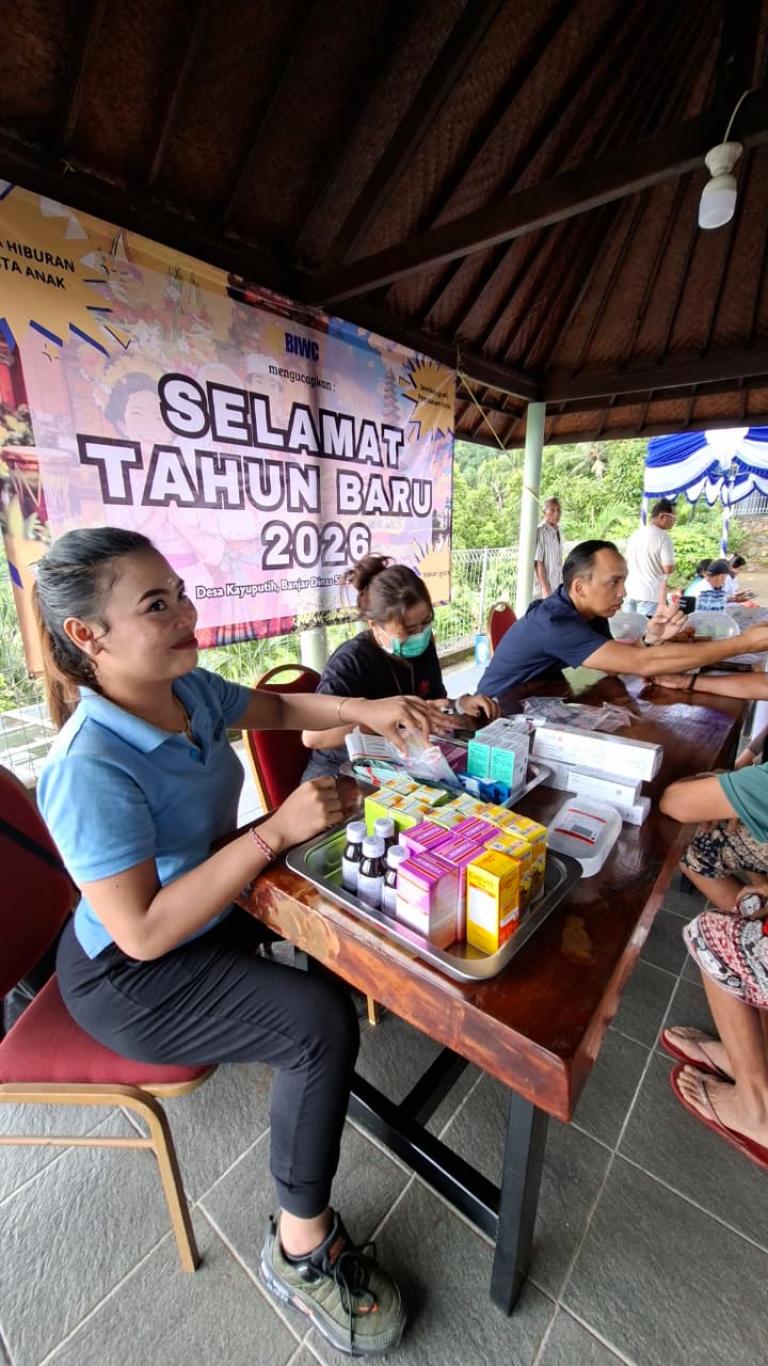 Perbekel Kayu Putih, Gede Gelgel Ariawan, menghadiri undangan kegiatan Giat Pengobatan Gratis dan Pembagian Sembako yang diselenggarakan oleh Bapak Hermanto dalam rangka menyambut Tahun Baru 2026. Kegiatan ini dilaksanakan di kediaman Bapak Hermanto yang berlokasi di Banjar Dinas Sinalud, Desa Kayu Putih, Kecamatan Sukasada, Kabupaten Buleleng.