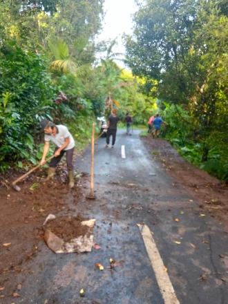 Gotong royong dilakukan sebagai respons atas kondisi jalan yang tertutup material lumpur, tanah, dan sampah akibat hujan deras yang mengguyur wilayah tersebut. Pembersihan difokuskan pada badan jalan dan saluran air agar akses transportasi masyarakat kembali lancar dan aman dilalui.