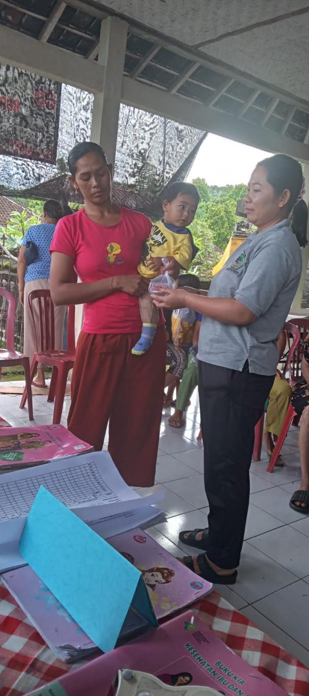 Mewakili Perbekel Kayu Putih, Kelian Banjar Dinas Panti menghadiri kegiatan Posyandu ILP Mawar yang dilaksanakan di Balai Banjar Dinas Panti, Desa Kayu Putih, Kecamatan Sukasada, Kabupaten Buleleng.