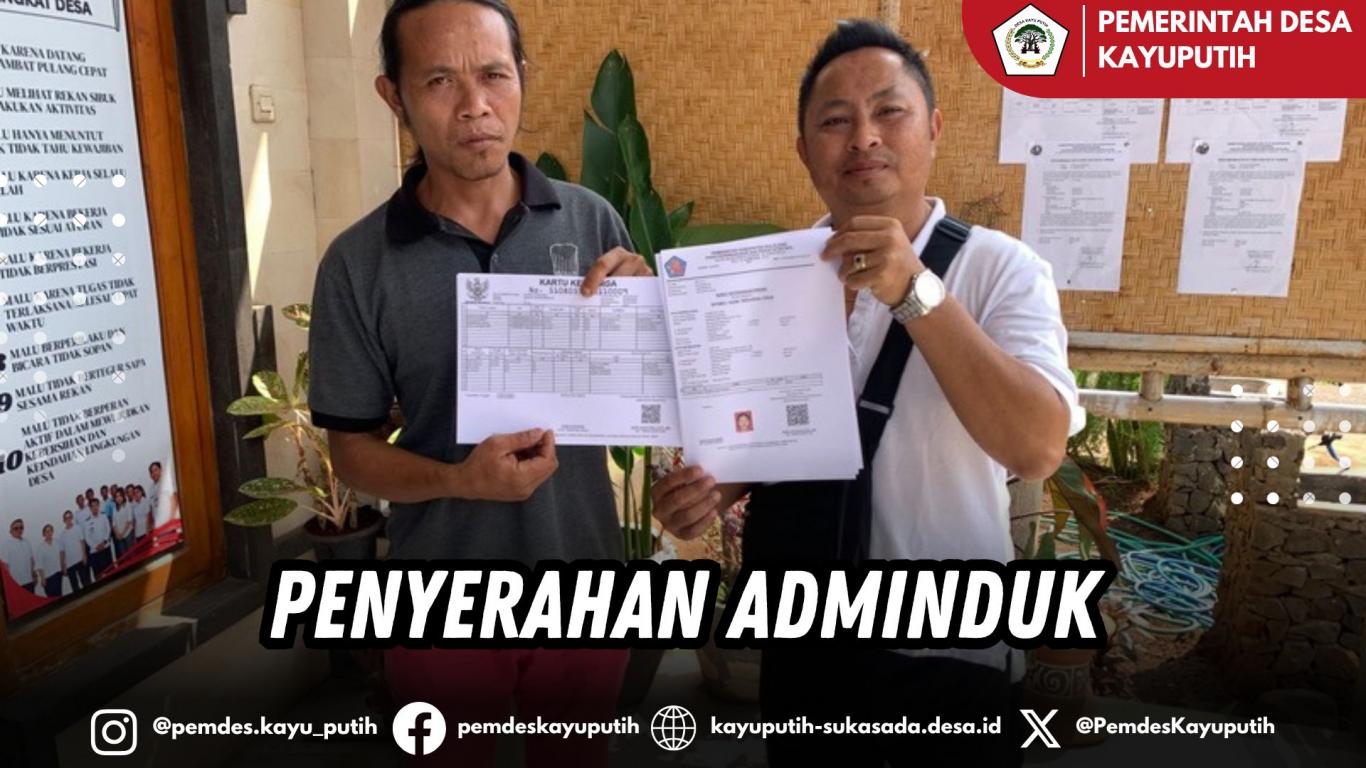 Jumat, 30 Januari 2026, Mewakili Perbekel Kayu Putih, Kelian Banjar Dinas Kayuputih menyerahkan dokumen kependudukan berupa KK atas nama Kadek Suarsana dan SKPWNI Kadek Sulistyadewi, Banjar Dinas Sinalud, Desa Kayu Putih, Kecamatan Sukasada, Kabupaten Buleleng.