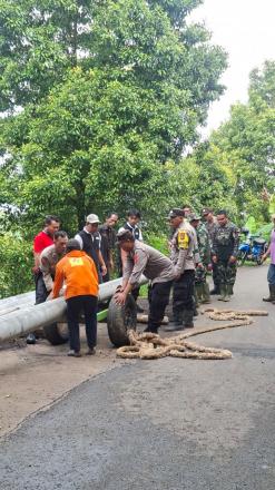 Perbekel Kayu Putih menghadiri kegiatan gotong royong pemindahan tiang listrik ke titik tertentu sebagai upaya perluasan jaringan listrik di Banjar Dinas Melaka, Desa Kayu Putih, Kecamatan Sukasada, Kabupaten Buleleng.