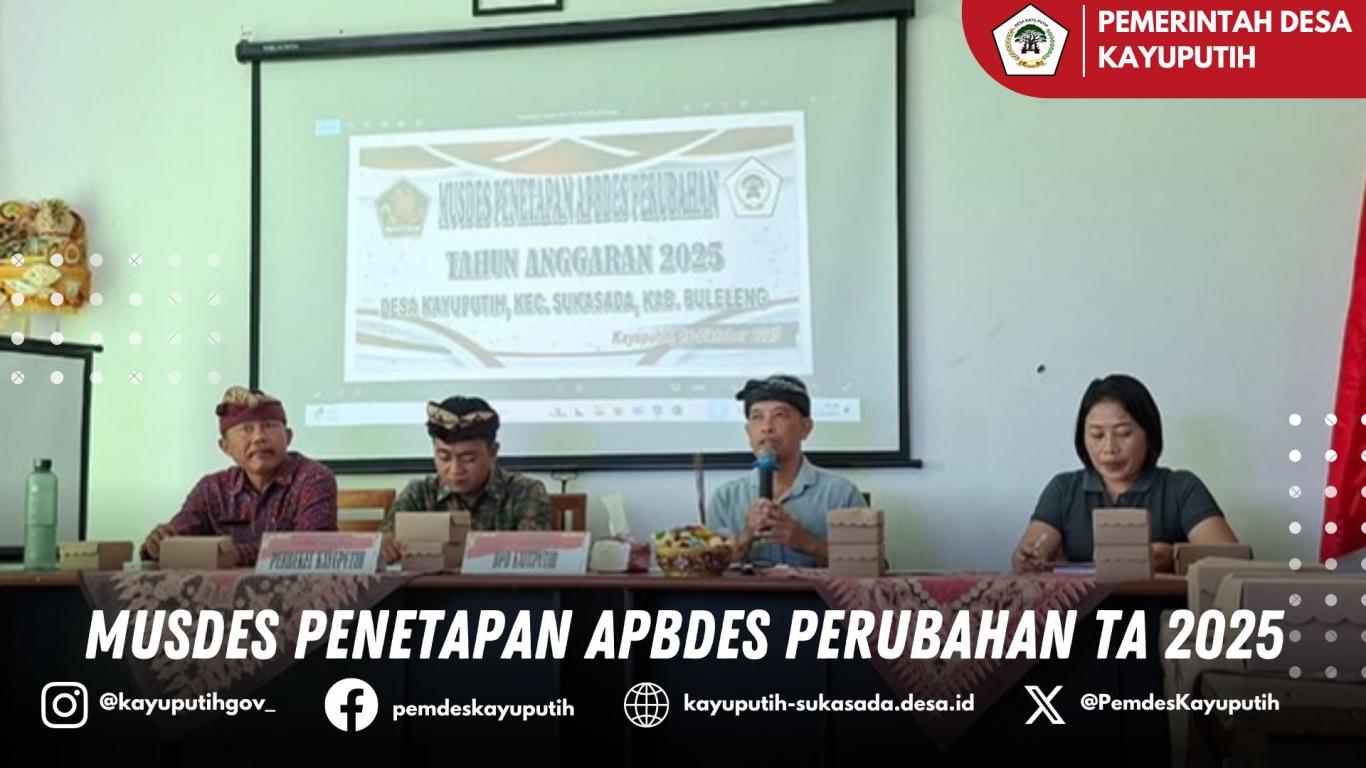 Kayuputih, 16 Oktober 2025 – Pemerintah Desa Kayuputih bersama Badan Permusyawaratan Desa (BPD) melaksanakan kegiatan Musyawarah Desa (Musdes) Penetapan Anggaran Pendapatan dan Belanja Desa (APBDes) Perubahan Tahun Anggaran 2025, bertempat di Ruang Rapat Kantor Perbekel Kayuputih.