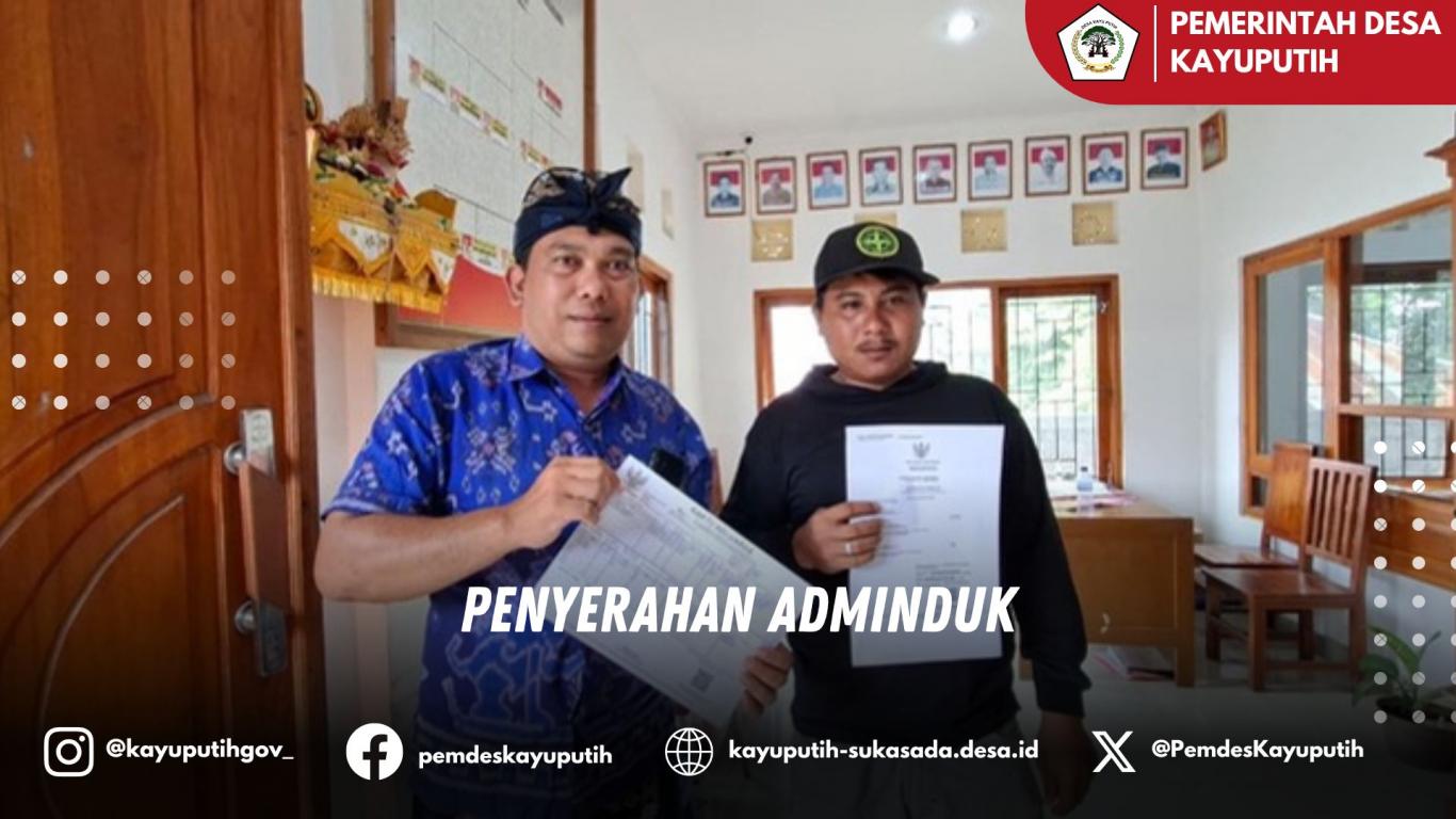Kayu Putih - Kamis, 23 Oktober 2025, Mewakili Perbekel kayu Putih, Sekretaris Desa Kayu Putih, menyerahan adminduk berupa Kartu Keluarga atas nama Gede Sadnaya dan akta kematian atas nama Komang Ayuni, dari Banjar Dinas Kayuputih, Desa kayu Putih, Kecamatan Sukasada, Kabupaten Buleleng