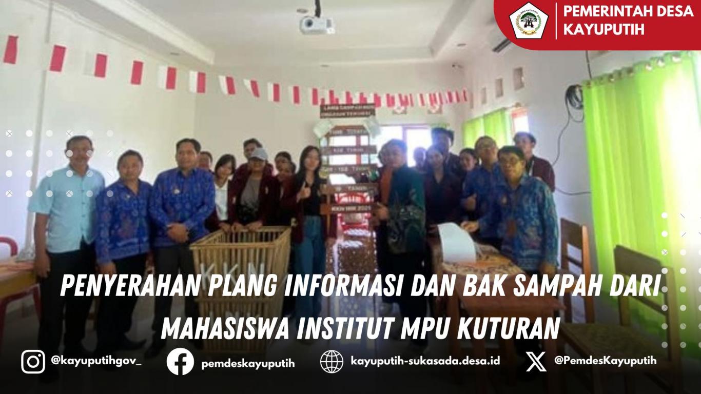 Kayu Putih - Selasa, 11 November 2025, Perbekel Desa Kayuputih Gede Gelgel Ariawan menghadiri kegiatan penyerahan plang informasi terkait pengelolaan sampah dan bak sampah oleh mahasiswa Institut Mpu Kuturan Singaraja, yang dilaksanakan di Aula Kantor Perbekel Kayuputih.