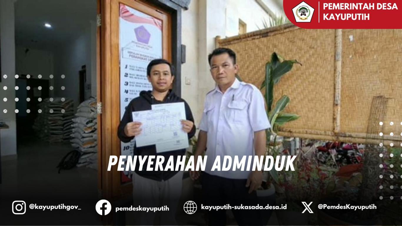Kayu Putih - Rabu 12 November 2025, Mewakili Perbekel kayu Putih, Kasi Pemerintahan menyerahkan Dokumen Kependudukan berupa Kartu Keluarga atas nama Kadek Dirga Yasa dan Akta Kelahiran atas nama Putu Bagas Dirga Putra, Banjar Dinas Bhuanasari, Desa Kayu Putih, Kecamatan Sukasada, Kabupaten Buleleng.