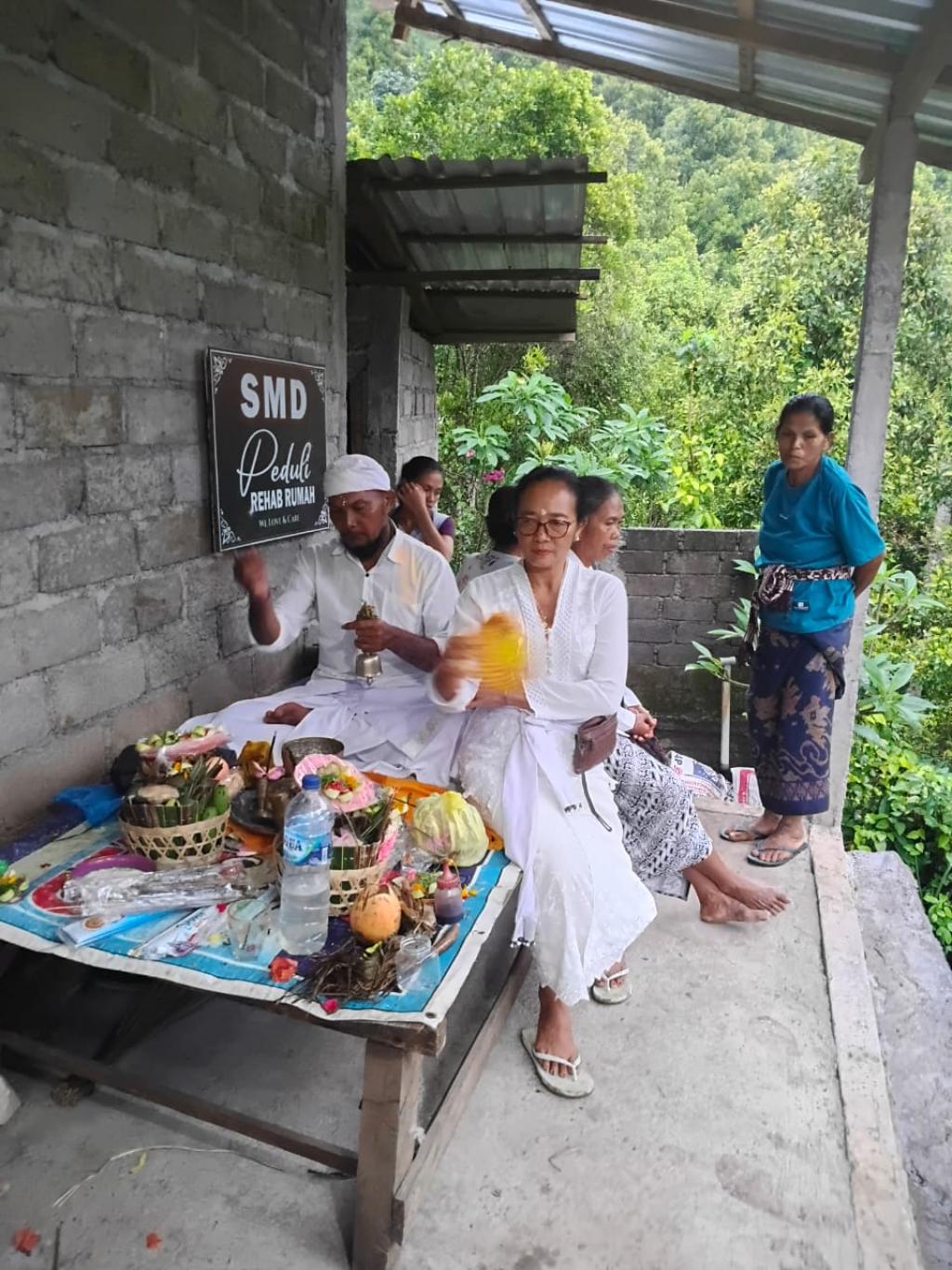 Kayu Putih - Jumat, 14 November 2025, Perbekel Kayu Putih Gede Gelgel Ariawan menghadiri acara Mecaru dan Melaspas Ngurip Makuh di rumah Ibu Nengah Sioni, penerima bantuan bedah rumah dari Bapak Komang Astawa atau yang lebih dikenal sebagai Bapak Komang Dauh. Rumah tersebut dibangun melalui semangat gotong royong warga Desa Kayu Putih, khususnya masyarakat Banjar Dinas Melaka, yang bersama-sama membantu proses pembangunan dari awal hingga selesai. Acara penyucian bangunan merupakan wujud syukur serta harapan agar rumah baru tersebut membawa keselamatan, kedamaian, dan keberkahan bagi penghuninya. Dalam kegiatan ini turut hadir Anggota SMD Peduli Rehab Rumah Desa Kayu Putih,Anggota BPD Banjar Dinas Melaka,Kelian Banjar Dinas Melaka.