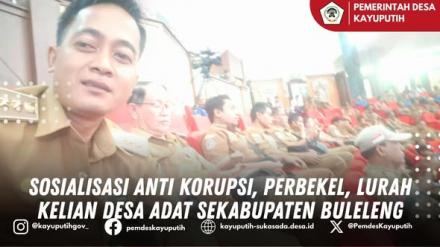 Perbekel Kayu Putih Gede Gelgel Ariawan menghadiri Rapat Sosialisasi AntiKorupsi yang diperuntukkan bagi Perbekel, Lurah, dan Kelian Desa Adat se-Kabupaten Buleleng. Kegiatan ini berlangsung di Gedung Kesenian “Gde Manik” Singaraja dan diikuti oleh seluruh jajaran pimpinan desa untuk meningkatkan pemahaman dan komitmen dalam mewujudkan tata kelola pemerintahan desa yang bersih, transparan, dan akuntabel.