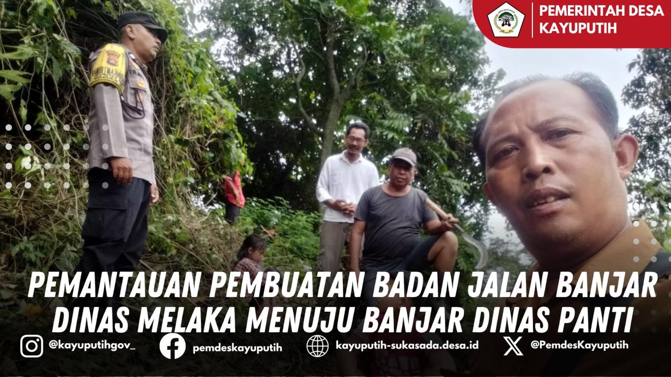 Senin, 15 Desember 2025, Kelian Banjar Dinas Panti bersama Bhabinkamtibmas Desa Kayu Putih melaksanakan kegiatan pemantauan terhadap pekerja pembuatan badan jalan yang menghubungkan Banjar Dinas Melaka menuju Banjar Dinas Panti.
