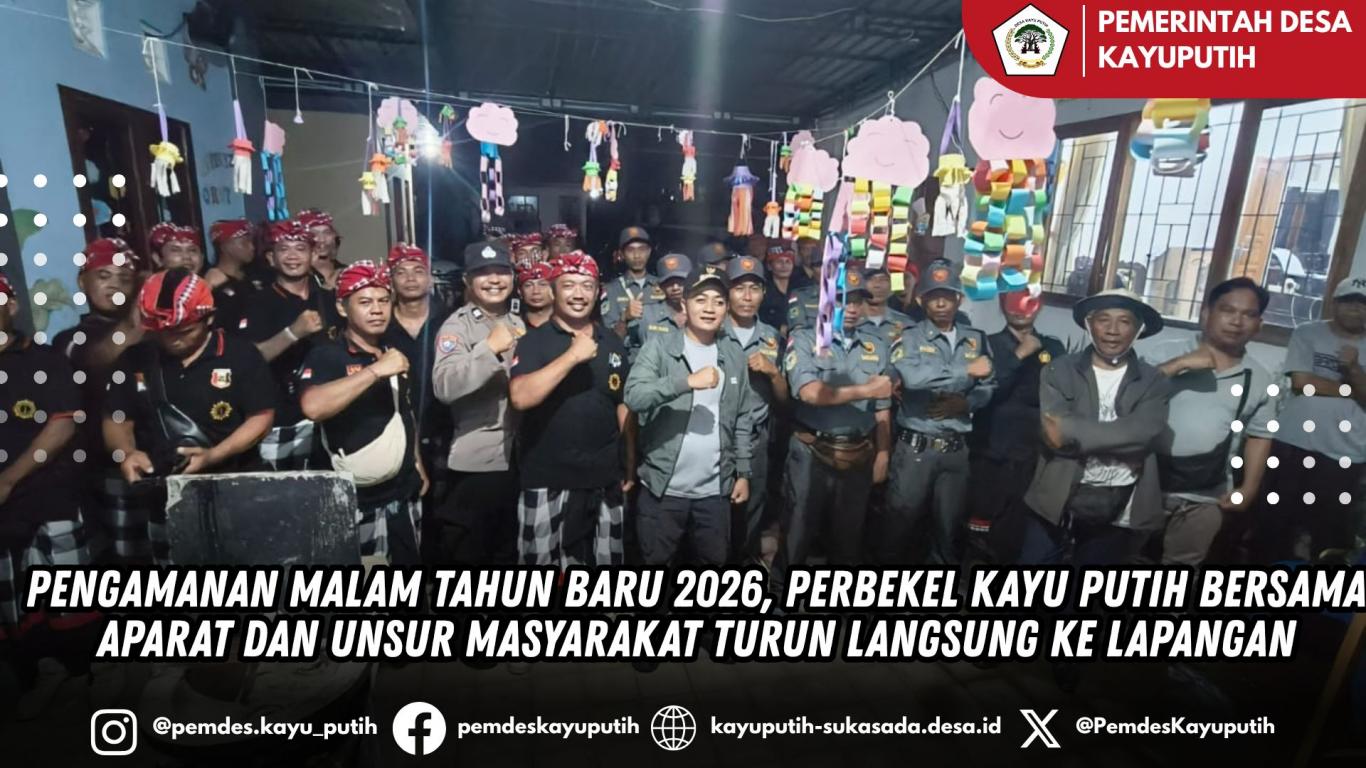 Dalam rangka menjaga keamanan dan ketertiban masyarakat menjelang pergantian Tahun Baru 2026, Perbekel Desa Kayu Putih melaksanakan kegiatan pengamanan terpadu di wilayah Desa Kayu Putih.